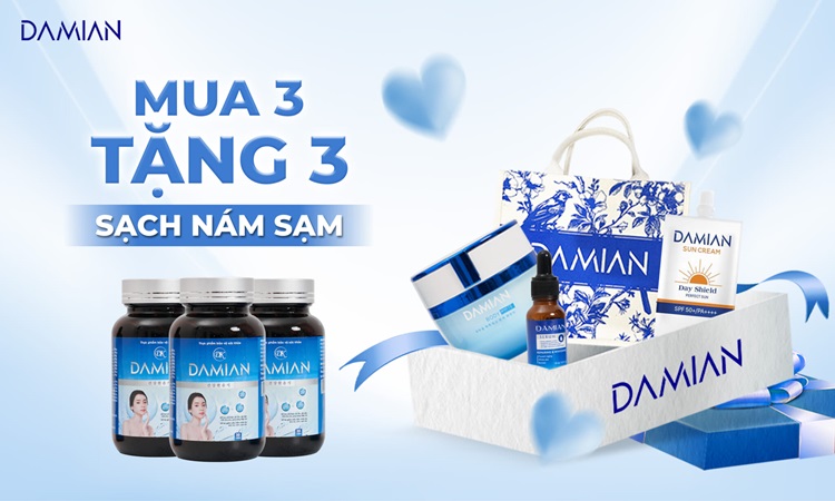 Chị cũng sử dụng 1 liệu trình uống một thời gian da của mình đẹp lên hẳn hết nám tàn nhang, da đều màu căng bóng mịn màng rất thích luôn. Bật mí luôn nha, khi mua một combo viên uống hỗ trợ trắng sáng da Damian sẽ được tặng 1 serum Damian, 1 kem dưỡng trắng da body, combo tiết kiệm cả về thời gian và chi phí.